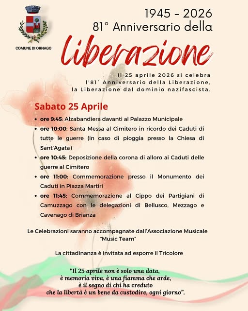 - 11:45 - Commemorazione al Cippo dei Partigiani di Camuzzago.